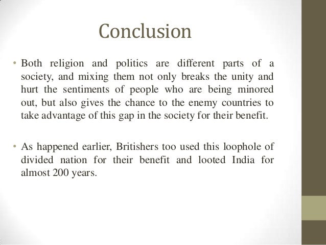 Where conservatism fails is that we are no longer living in separate communities. It's one global economy, one atmosphere, one water cycle, one oil supply, etc. Haidt faults liberalism do politics and religion mix essay damaging American moral capital in the 60s and 70s, but he doesn't explain how conservatism can become big enough rule the globe.